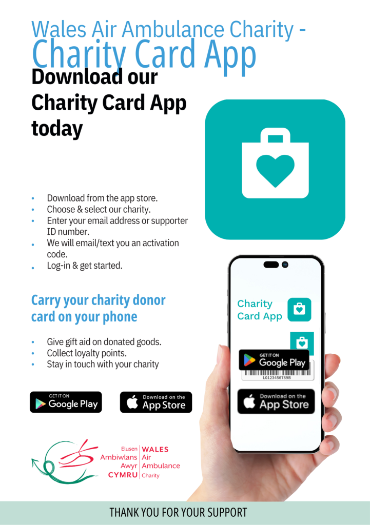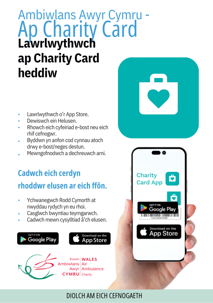 Lawrlwythwch ap y cerdyn elusen a chael eich cerdyn rhoddwr elusen ar flaenau eich bysedd.
