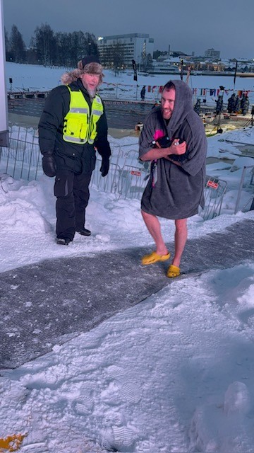 Alistair said: “In Oulu, Finland, on the coldest day, the water temperature was -0.5°C and the air temperature was -13°C. We completed six swims without wetsuits in those conditions. It was a brutal, but an amazing experience and we supported each other through it.”