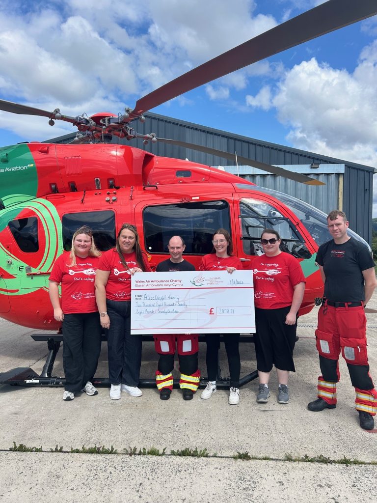 Alice Wright has helped raise £2,800 for Wales Air Ambulance after clinicians attended her following a road traffic collision in Denbighshire in November 2022.