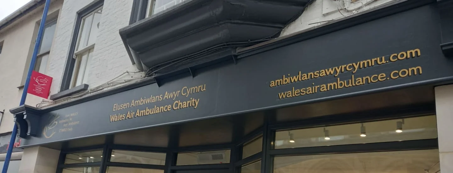 As well as the new branding in store – the outside of the shop displays a hand painted Wales Air Ambulance shop sign, A Stipulation of the grant was that the new shop frontage needed to be hand painted in specific colours to be in keeping with the conservation area. This is the first Wales Air Ambulance store to have a hand painted sign.